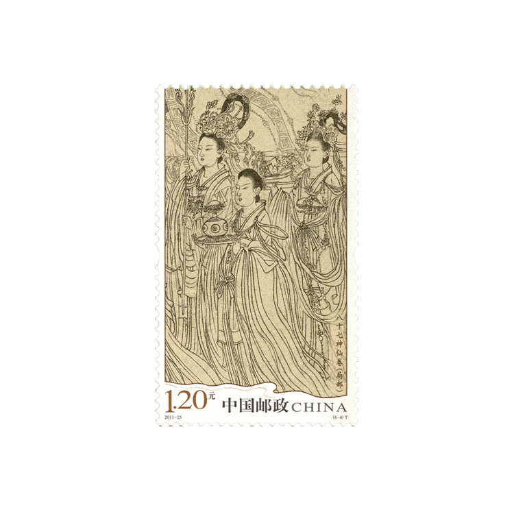中国邮政2011年9月26日发行《八十七神仙卷(局部)》特种邮票,1套6枚,小本票1本。