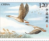 China Post will issue a set of one special stamp featuring wild geese, with a denomination of 1.2 yuan (0.17 US dollars), on August 17, 2018.