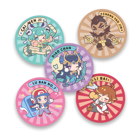以打工人的视角,通过拆排英雄人物姓名,用李白、貂蝉、蔡文姬、程咬金和鲁班七号谐音梗制作职场打工人语录,从而引发玩家打工人共鸣。产品创新性使用毛毡本、冰箱贴、便签贴、明信片组合形式,兼具美观性、可玩性和实用性。