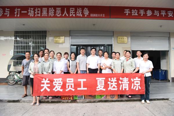 自7月份以来,鄂东大地骄阳似火,热浪袭人,最高气温达40℃以上,但全市邮政员工依然精神饱满、斗志昂扬,奋战在各自岗位上。酷暑天气下,一线员工的身心健康深深牵动着市分公司领导的心。7月25日至8月10日,黄冈市分公司领导班子成员带队,分别深入各县市区分公司投递站、转运中心和支局网点等生产现场进行“夏送清凉”关爱员工慰问活动,为一线员工送去凉爽的同时,也带去市分公司党委的深切关怀和温暖情谊。