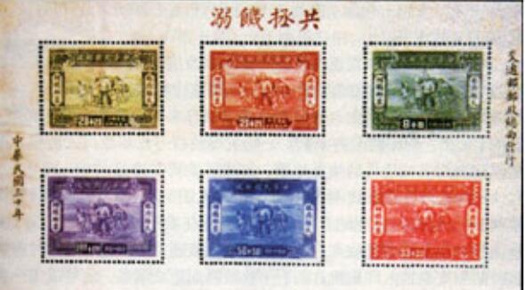 这套邮票的主图为一家6口,扶老携幼,离乡逃亡。邮票两侧为“赈济难民”“附捐邮票”8个字。邮票上部为“中华民国邮政”字样,邮票下部为邮票面值加捐资。全套6枚,图案相同;但边框图案不同。面值为8分+8分、21分+21分、28分+28分、33分+33分、50分+50分、1元+1元。由美国钞票公司印制。这套邮票另有1枚小全张,印有全套6枚邮票,上部有“共拯饥溺”四字,两边有“交通部邮政总局发行”“中华民国三十年”字样。