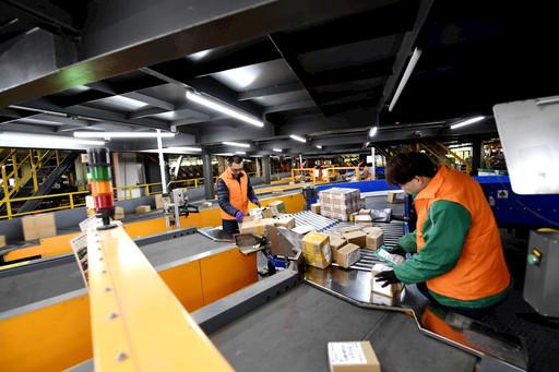 A double-deck automatic parcel sorting machine was put into operation at Jinan Post District Central Bureau, in east China's Shandong Province, on January 16, 2019.