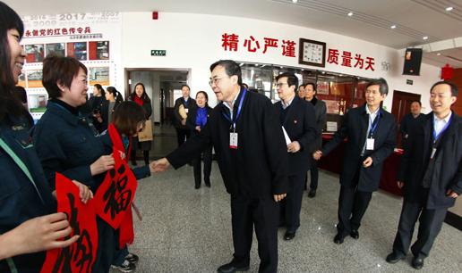 | Liu Aili, president and secretary of the Communist Party Committee of China Post Group, pays a visit to the staff of Beijing Confidential Communication Bureau and conveys New Year’s greetings to them on behalf of the party group of China Post in Beijing on February 1, 2019. [China Post] |