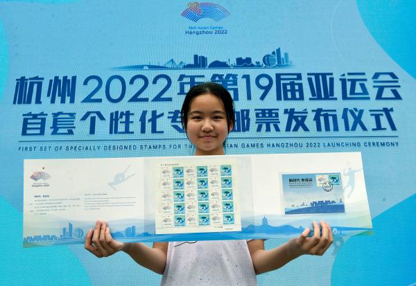 On May 18, the 1st set of individualized stamps specially designed for the 19th Asian Games Hangzhou 2022 (hereafter referred to as Hangzhou Asian Games) was issued. This set of stamps has the emblem of the Hangzhou Asian Games as the main image and the main stadium as the attached one. 3D virtual scenes may come into sight when scanned through the E-Sports app “fu’nengyayun” or Alipay in a smartphone. The AR technology used in the stamps may enable the philatelists to interact with the stamps and to learn more about the Games.