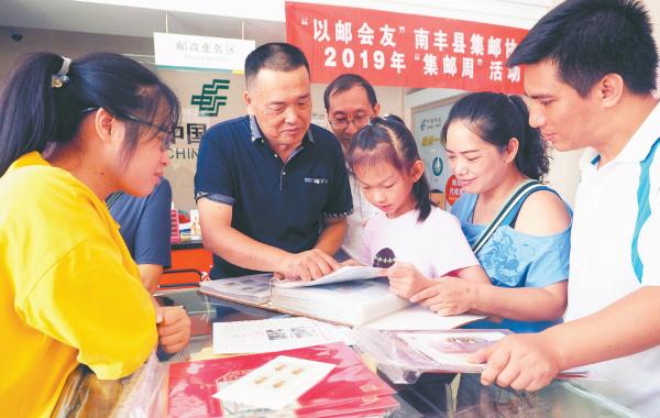 On August 4, the Philatelic Week campaign in Nanfeng County, Jiangxi Province is held in the business hall of the branch post office. Many stamp collectors actively participate in it. They are all attracted by the delicate designs of the beautiful stamps. Mao Xiaomin, Vice President of the Philatelic Federation of Nanfeng County, is talking about the stamp album of “World Heritage” in a simple and easy-to-understand way so that everyone can appreciate the beauty of the world heritage through stamps.