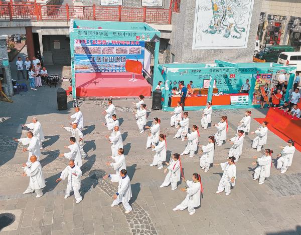 On August 3, the first-issue ceremony of the special stamps “Landscapes of the Five Great Mountains” is held at Yide street, Hunyuan County, Datong City, Shanxi Province, where Hengshan Mountain in the North is located. The ceremony is kicked off in a magnificent performance of the “Hengshan Fitness Regimen Taichi”. Nearly 100 spectators gather at the foot of the Hengshan Mountain to witness the issuance of the special stamps.