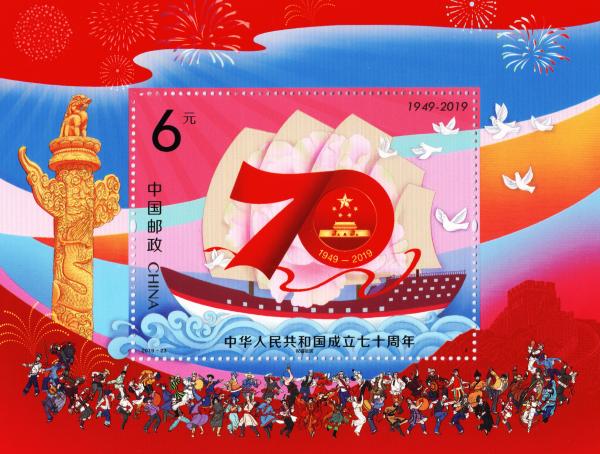 China Post is to issue the 70th Anniversary of the Founding of the People’s Republic of China commemorative stamps (5 in one set) and a souvenir sheet on October 1. The designs of the stamps are named respectively as Sustainable and Sound Development of Economy, Advance of socialist democracy and politics, Flourishing Culture, Improvement of Life Standard, and Construction of Beautiful China. The design of the souvenir sheet is entitled Blessing the Motherland. The face value of the whole set is 12 yuan.
