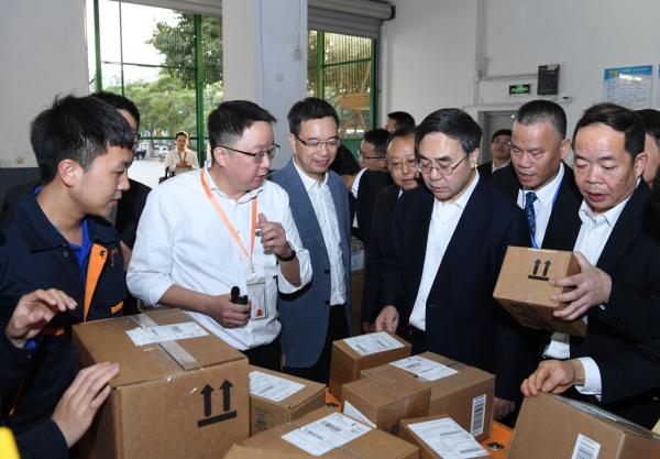 | Mr. Liu Aili inspects the International Mail Processing Center in Xiamen. |
