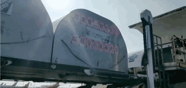After a batch of overseas donations arrives at the Beijing Capital International Airport on the afternoon of February 2, all relevant departments of China Postal Airlines immediately respond to the instructions and finalize the transportation plan. The crew on-duty, the ground support and other related work are in place at night. At 10:50 am on February 3, the materials arrive at the postal operation area, and the security check begins. At 10:55 am, the containers are packed and assembled. At 13:20, the materials arrive at the apron and are directly loaded to the freighter. All processes are seamlessly connected. At the same time, the Wuhan branch of China Postal Airlines has completed the coordination work for ground support at Tianhe Airport early in the morning. At 16:05, the freighter arrives at Tianhe Airport. Half an hour later, all the materials are unloaded and transferred from the airside to the landside.