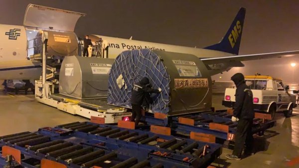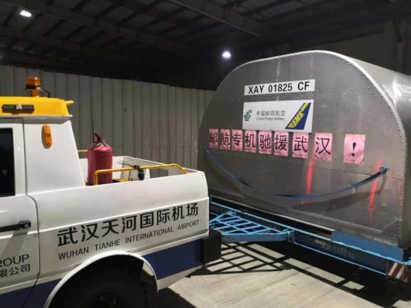 At 17:32 on February 27, China Postal Airlines flight CF9121 takes off from Beijing Capital Airport carrying 16 German-made ECMOs and their supporting consumables with a total weight of 1.618 tons. At 19:16, it arrives at Wuhan Tianhe Airport in a light rain. Wuhan branch of China Postal Airlines and ground support department of Tianhe Airport start unloading the life-saving machines immediately and complete the handover from air to land transportation as soon as possible.
