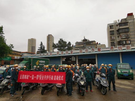 为贯彻落实全国“一盔一带”安全守护行动部署要求,全力促进快递员佩戴安全头盔行动,5月27日,云南省交警总队车管处、省寄递事业部速递业务责任中心、昆明市邮政分公司共同召开云南警邮联动“一盔一带”启动大会,会上,省交警总队车管处相关人员为快递骑手普及“一盔一带”相关知识,开展“一盔一带”知识有奖抢答,并现场为快递员发放头盔。□娄华 摄影报道