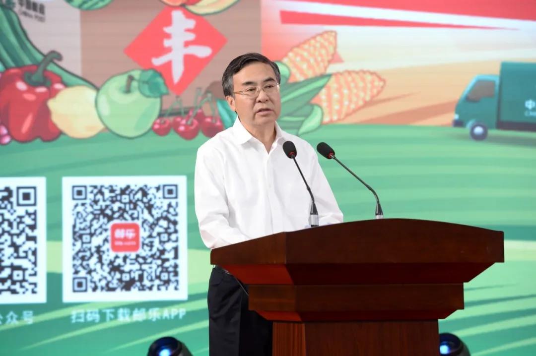 At the launch ceremony, Ou Qingping and Zhang Jinliang jointly issued the brands of “China Post Farm Produce”. Zhang Jinliang conferred signboards to the six representatives from the bases of postal farm produce, such as Qixia Apple Base, Hanyuan Cherry Base and so on. Dai Yingjun and Guo Xinshuang jointly unveiled the theme postcard Bumper Harvest. For further cooperation, Kang Ning, on behalf of China Post, exchanged cooperation agreements with nine partners, including State Grid Electronic Commerce Co. Ltd., China Good Agri-products Development & Service Association, Missfresh, Suning, Pinduoduo, New Hope Group, China Resources Beer (Holdings) Company Limited, Budweiser Brewing Company and Want Want Group.