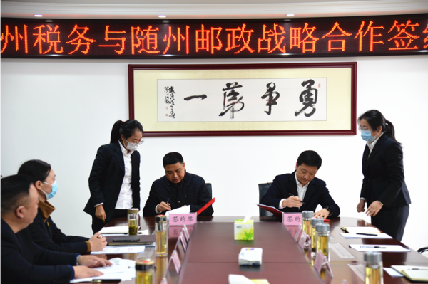 3月10日,随州市邮政分公司与随州市税务局举行战略合作签约仪式,双方将深入推进纳税人“发票网上申领、免费快递送达”工作,在代征税款、文化传媒、党建共建等方面寻求合作新突破,进一步优化营商环境,服务地方经济发展大局。