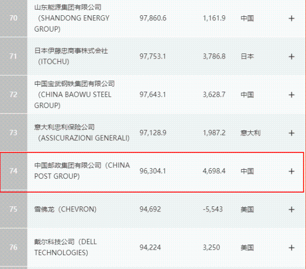 On August 2, the 2021 Fortune Global 500 list was released, and China Post Group Corporation Limited (China Post Group) was found to rank 74th, advancing onto the top 80 list for the first time. China Post Group comes in second among the 6 listed postal companies in the world, with its annual business revenue ranking the second and its profit ranking the first.