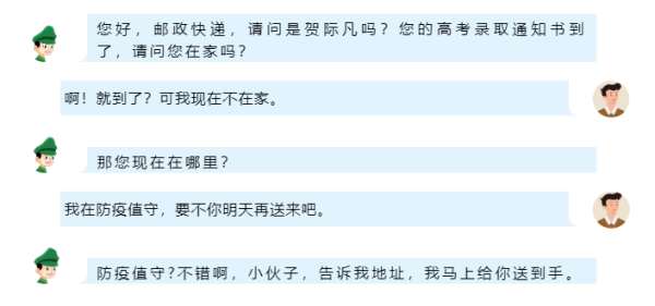 一封又一封的高考录取通知书给原本因疫情笼罩着的广大家庭,送去了欣喜和欢愉,邮政投递员并没有因为疫情的阻挡而慢下投递的脚步。投递员会在第一时间联系考生,征询投递时间和方式,确保考生第一时间了解通知书的状态。此外,对疫情管控的小区,要求存放投递部的,邮政明确专人负责登记、入柜安全存放,等待考生联系,约定投交时间和方式,再行组织投递。若未与投递员联系的,工作人员会在3至5天内再次联系考生,确定具体情况。