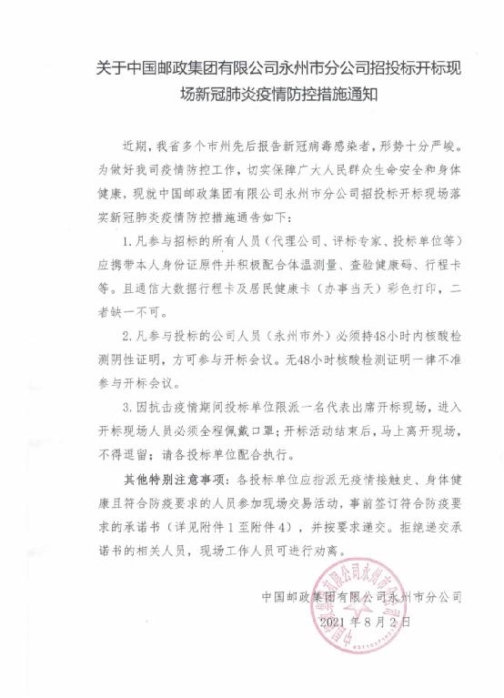 2)递交地点:中国邮政集团有限公司永州市分公司六楼会议室。