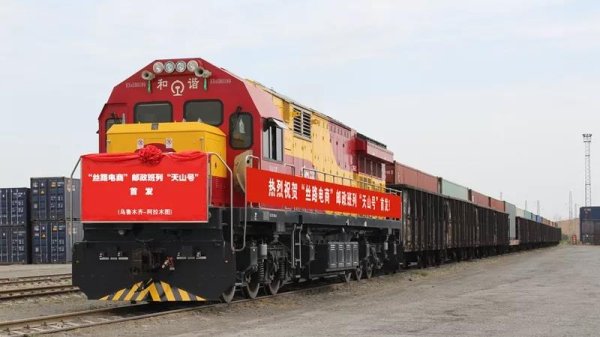 Loaded with international mail and cross-border e-commerce parcels, the Tianshan postal block train for Silk Road e-commerce set off for the first time from the west freight yard of Urumqi, capital city of Northwest China's Xinjiang Uygur Autonomous Region, to Almaty, Kazakhstan on November 26.