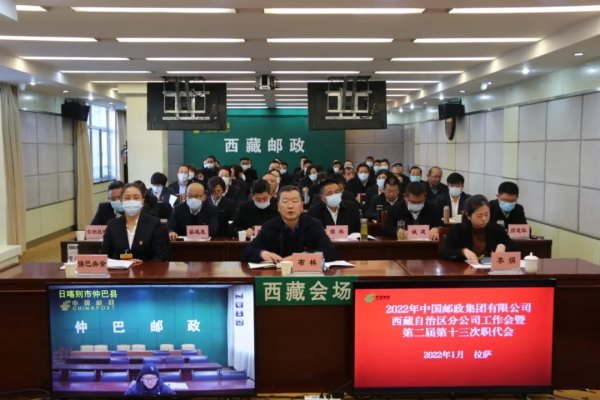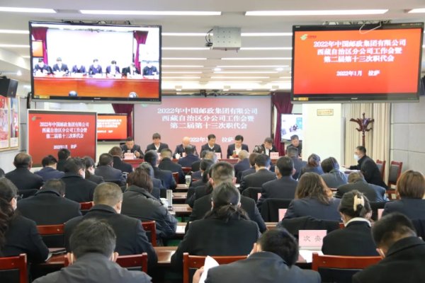 1月15日,2022年中国邮政集团有限公司西藏自治区分公司工作会暨二届十三次职工代表大会在拉萨召开。本次会议坚持以习近平新时代中国特色社会主义思想为指导,全面贯彻党的十九大和十九届历次全会精神,认真落实自治区第十次党代会和两会精神,按照集团公司工作会议部署,总结工作,研判形势,安排2022年工作任务,动员全区邮政员工以更加坚定的信心、更加奋发的姿态、更加有力的举措,为谱写西藏邮政高质量发展新篇章而努力奋斗。