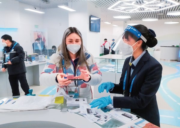 The temporary post office at the Main Media Center for the Beijing 2022 Olympic and Paralympic Winter Games, after communicating with the Beijing Organising Committee for the Games for COVID-19 countermeasures, made some boards bearing warm tips for postal service handling process, which not only met the needs of the guests but also effectively prevented epidemics, thereby highly recognized by the Organising Committee. On February 5, the first day when the Winter Olympics themed philatelic products were officially on sale, postal staff arrived at the outlet on time at 7:30. They set up a buffer zone and effectively ensured the order on the service site. Meanwhile, the marketing, cashier and accounting teams worked closely together in the process and guaranteed the service quality at the outlet.