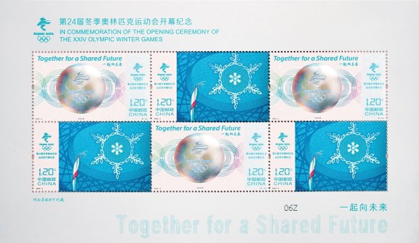 After the grand opening ceremony of the Olympic Winter Games Beijing 2022 on February 4, China Post officially issued the commemorative stamps on this event. The stamps entitled In Commemoration of the Opening Ceremony of the XXIV Olympic Winter Games, are two pieces in a set, the designs of which are respectively named “Together for a Shared Future” and “The Light of Hope”. The denomination of the stamps is 2.40 yuan, and 11.5 million sets of such stamps are planned to be issued. The overall pictures of stamps are concise and exquisite, manifest an ethereal, elegant and modern sense of design, coincide with the philosophy of the opening ceremony of the Olympic Winter Games, and are therefore well received by all sectors of the society.
