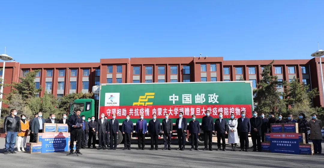 这是内蒙古邮政与内蒙古大学校企携手、千里驰援的爱心行动,双方举行了内蒙古大学捐赠复旦大学疫情防控物资发车仪式,内蒙古邮政分公司党委书记、总经理蔡明辉,内蒙古大学党委书记刘志彧出席并讲话。内蒙古邮政分公司副总经理宝勒德及相关部门负责人参加活动。