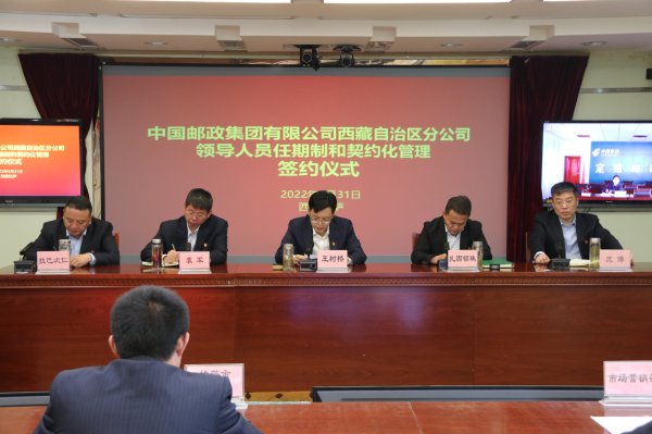 5月31日上午,全区邮政领导人员任期制和契约化管理签约仪式在拉萨举行。区分公司领导班子全体成员出席仪式。区分公司党委书记、总经理王树桥分别与签约代表签订了《岗位聘任协议》、《年度经营业绩责任书》《任期经营业绩责任书》,并作了讲话。区分公司党委委员、副总经理扎西顿珠主持仪式。