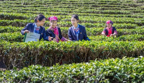 Staff members of PSBC Wuzhishan Branch in Hainan province go to Shuiman township to provide service for Miao tea planting cooperatives. |