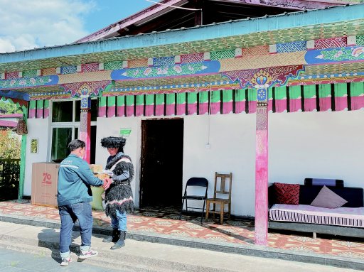 In Haidong of Qianghai province, a postman is delivering express items to a rural resident. |