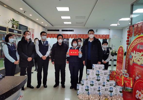 在大树湾便民服务站,潘峰副总经理深入了解产品特色、生产流程以及销售收入,并指出:邮政定期通过线上直播、社区团购、邮乐小店等多种渠道打造名优特产,坚信未来合作的路子会越走越宽。调研期间,潘峰副总经理到困难员工、劳动模范家中送上新春祝福和慰问金,与他们亲切交谈,详细了解家庭生活水平、身体健康等情况,充分肯定了劳动模范的付出并感谢其对企业发展所做出的贡献。
