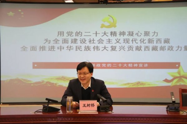 3月1日,区分公司采用现场讲授和电视电话会议相结合的方式举办党的二十大精神宣讲报告会。区分公司党委书记、总经理王树桥以《用党的二十大精神凝心聚力,为全面建设社会主义现代化新西藏,全面推进中华民族伟大复兴贡献西藏邮政力量》为题,为西藏邮政党员领导干部作党的二十大精神宣讲。党委委员、副总经理扎西顿珠主持会议。