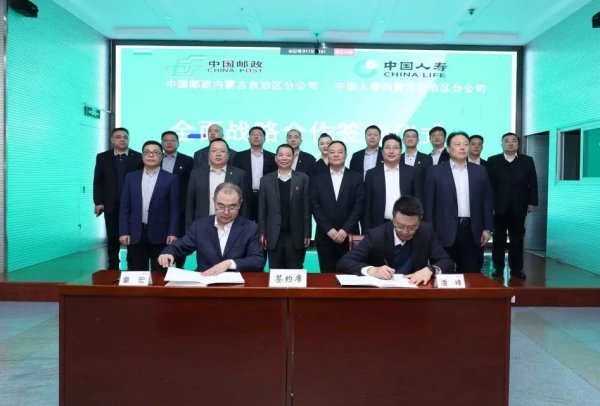 3月29日下午,内蒙古邮政与内蒙古国寿签订战略合作协议。内蒙古邮政分公司总经理蔡明辉、内蒙古国寿分公司总经理吴徐平讲话,内蒙古邮政分公司副总经理潘峰与内蒙古国寿分公司副总经理童宏代表双方签署战略合作协议,内蒙古邮政分公司副总经理宝勒德、副总经理荣建国参加签约仪式。