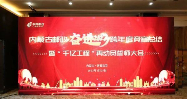 4月25日,内蒙古邮政金融“奋进2023”跨年度竞赛总结暨千亿工程再动员誓师大会在呼和浩特召开。会议总结了2022-2023年全区跨年度竞赛期间的各项工作,表彰了活动期间先进盟市、旗县分公司和先进支局,并对“千亿工程”活动方案进行再宣贯。区分公司总经理蔡明辉作了题为“重任千钧再奋进 踔厉奋发向未来 全速推进邮政金融业务高质量发展”的再动员讲话,区分公司副总经理荣建国作了全区邮政金融“奋进2023”跨年度竞赛总结讲话。区分公司领导班子出席会议并为获奖单位颁奖。全区邮政1000余名干部员工通过现场及电视电话会议的形式参加了会议。