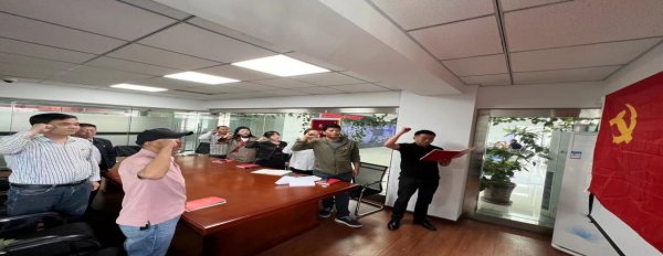 6月30日上午,机关第七党支部、第九党支部共同开展主题党日暨重温入党誓词活动。宣誓仪式上,全体党员面向党旗,重温入党誓词:“我志愿加入中国共产党,拥护党的纲领……”,入党誓词,句句千钧,诚挚的誓言表达了身为新时代党员的责任和担当,以自己的实际行动为党旗增光添彩、为企业高质量发展贡献自己的力量。