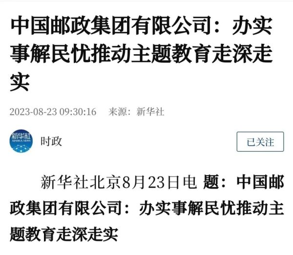 学习贯彻习近平新时代中国特色社会主义思想主题教育工作会议召开以来,中国邮政集团有限公司深入学习贯彻习近平总书记关于主题教育系列重要讲话和重要指示批示精神,把开展主题教育同贯彻落实党中央重大决策部署结合起来,下足“真、实、干、效”四字功,办实事解民忧,推动主题教育走深走实、见行见效。