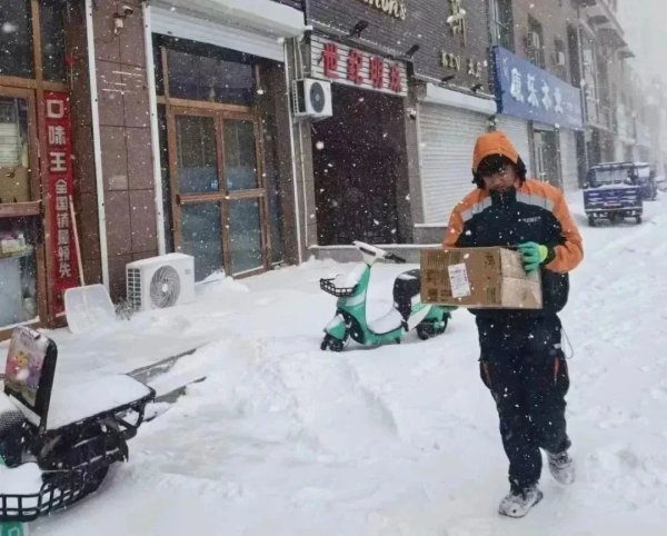 “雪下得这么大,还能收到包裹,辛苦了!”