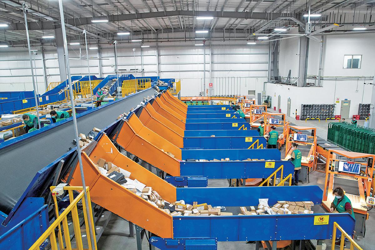 在重庆市空港邮件处理中心,工作人员各司其职,处理设备运转不停。□朱亚坤 摄