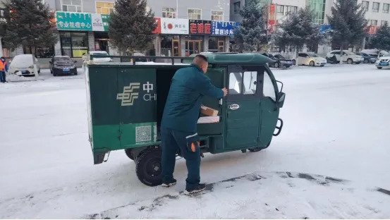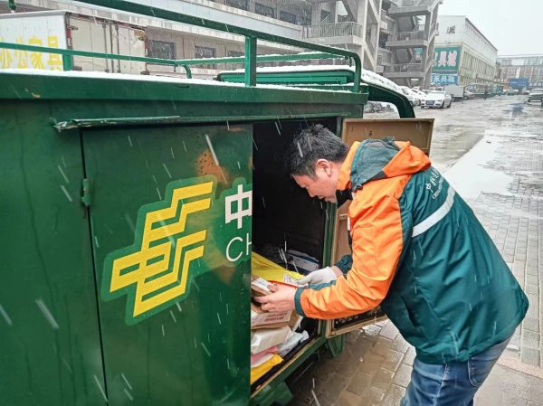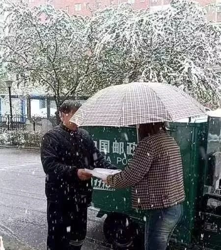突如其来的雨雪也阻挡不了邮政人的脚步