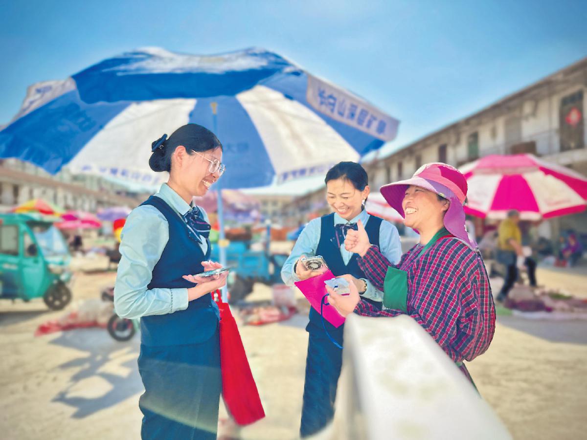 近日,江苏省沛县邮政分公司开展“微邮付”特色菜市场商圈服务提升活动。邮政员工挨家挨户与菜场摊主沟通交流,推介邮政商户收单业务,记录服务改进建议,做到“有问必答,有需必应”,提升为商户服务的能力。