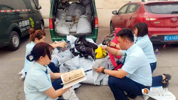 收取包裹完成后,乌达区邮政分公司第一时间验视包裹并打包寄送。