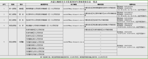 根据内蒙古邮政分公司党委工作部署,截至7月22日,党委2024年巡察完成进驻工作,5个巡察组对4个盟市分公司党委及所辖旗县(区)分公司党支部开展常规巡察,对9个旗县(区)分公司党支部开展专项巡察。