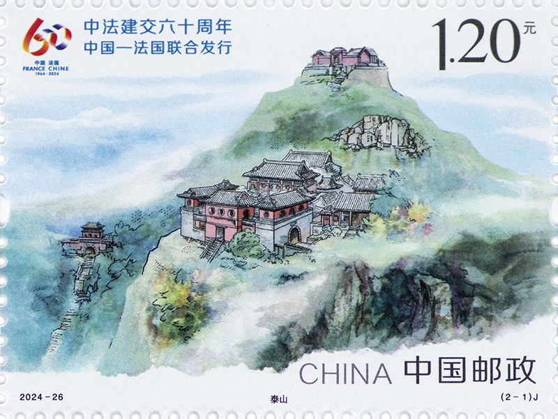 On October 18, China and France jointly issued a set of commemorative stamps entitled The 60th Anniversary of China-France Diplomatic Relations. This set consists of two stamps, the designs of which are named The Mount Taishan and The Mont-Saint-Michel.