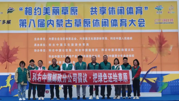 9月28日-29日,“相约美丽草原·共享休闲体育”第八届内蒙古草原休闲体育大会落地兴安盟科尔沁右翼中旗。科右中旗邮政分公司积极参与,提供全方位志愿服务,并组织开展“把绿色还给草原”公益宣传活动,将“绿色邮政 绿色发展”的实践行动深度融入“绿水青山就是金山银山”的生态文明理念。