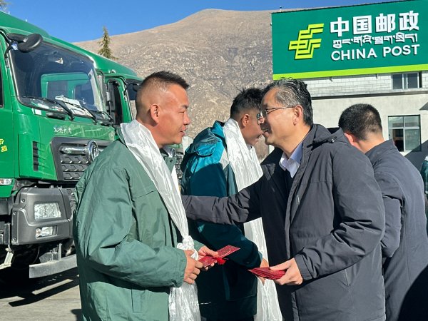 1月25日,在农历乙巳年春节即将来临之际,为表达对快递从业人员的关心关爱,西藏自治区邮政管理局局长王惠文一行看望慰问拉萨邮区中心生产一线员工。