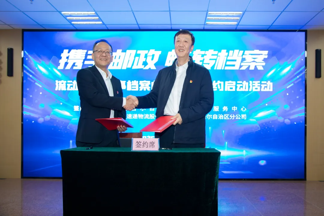 2月8日,中国邮政集团有限公司新疆区分公司与自治区公共就业服务中心举办“携手邮政 畅转档案”流动人员人事档案邮政寄递签约仪式。中国邮政集团有限公司新疆区分公司党委委员、副总经理唐新磊,自治区公共就业服务中心党委副书记、主任杨晓龙出席仪式,代表双方签约,并发表致辞。
