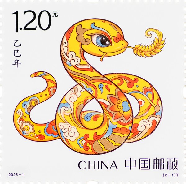 中国邮政定于2025年1月5日发行《乙巳年》特种邮票1套2枚,小本票1本。详情如下:
