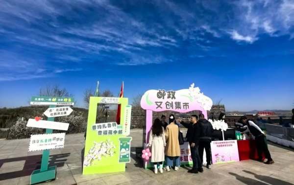 通辽市扎鲁特旗邮政分公司积极响应,成立专项设计团队,将集邮传统文化与地方特色旅游深度融合,自主设计了邮政打卡区。极具特色的空间,将赏花美景以书信文化的形式结合,山杏花、杜鹃花图案搭配邮政绿,多巴胺配色营造春天浪漫氛围。现场还配备了明信片打印机,为游客打造了别具一格的打卡体验,留下难忘的春日记忆。
