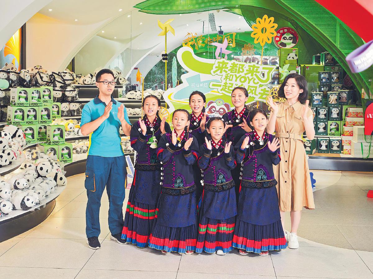 在成都世运会开幕式上以一曲《万千》惊艳亮相的四川凉山彝族自治州普格县“妞妞合唱团”,近日受邀参加《这局好玩儿》节目“沿着邮路看中国·成都站”活动。这群大山里的孩子走进成都熊猫邮局,开启了一场融合邮政文化与熊猫主题的游学之旅。其中,最令孩子们惊叹的是“AI邮差”互动装置,通过AI算法,人像与竹林、IFS熊猫雕塑等场景融合,生成定制明信片。“我要把成都的美景寄给山里的伙伴!”一位“妞妞”兴奋地说。活动结束前,孩子们即兴献唱原创歌曲。清澈的童声如山泉流淌,洗去夏日燥热。