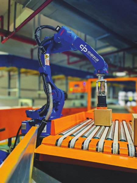 8月19日,在安徽省合肥邮区中心,双臂供件机器人在抓取分拣快递邮件。
