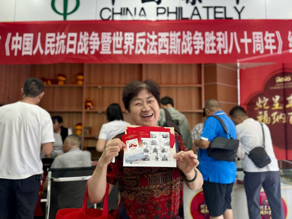 9月3日,《中国人民抗日战争暨世界反法西斯战争胜利八十周年》纪念邮票正式发售。众多集邮爱好者早早前来,在邮票销售区排起长队,大家满怀期待,希望能第一时间购得这套具有特殊历史意义的邮票,以此缅怀先烈、铭记抗战历史。