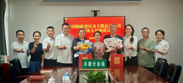 9月26日,丰都邮政工会举办“邮路情长,薪火相传”退休员工座谈会。丰都邮政领导班子、各部门负责人与退休老员工欢聚一堂,共忆邮路岁月,共话企业发展,以最诚挚的心意向为丰都邮政奉献的2位退休员工致以最崇高的敬意。